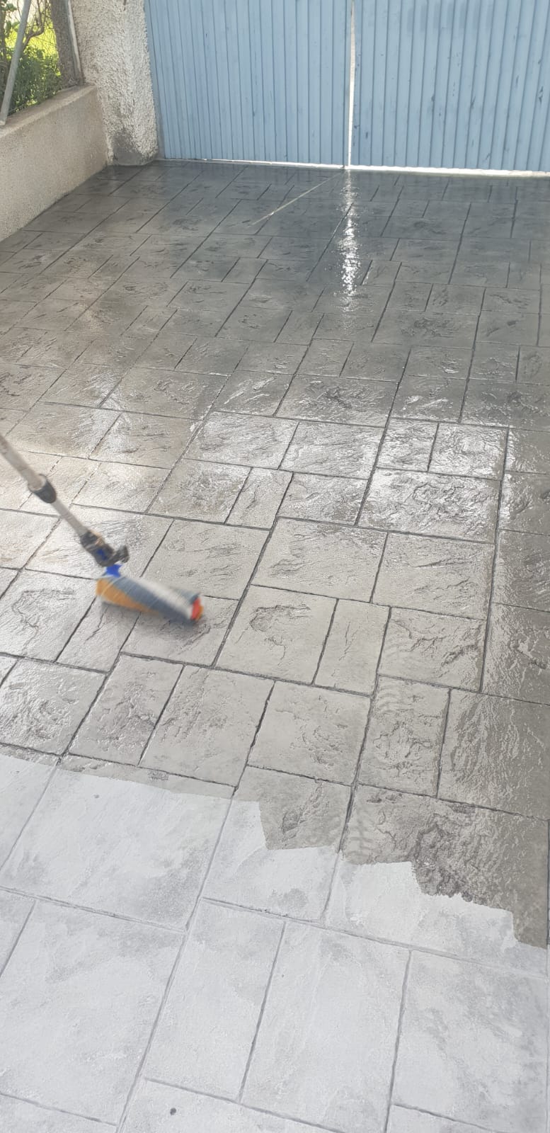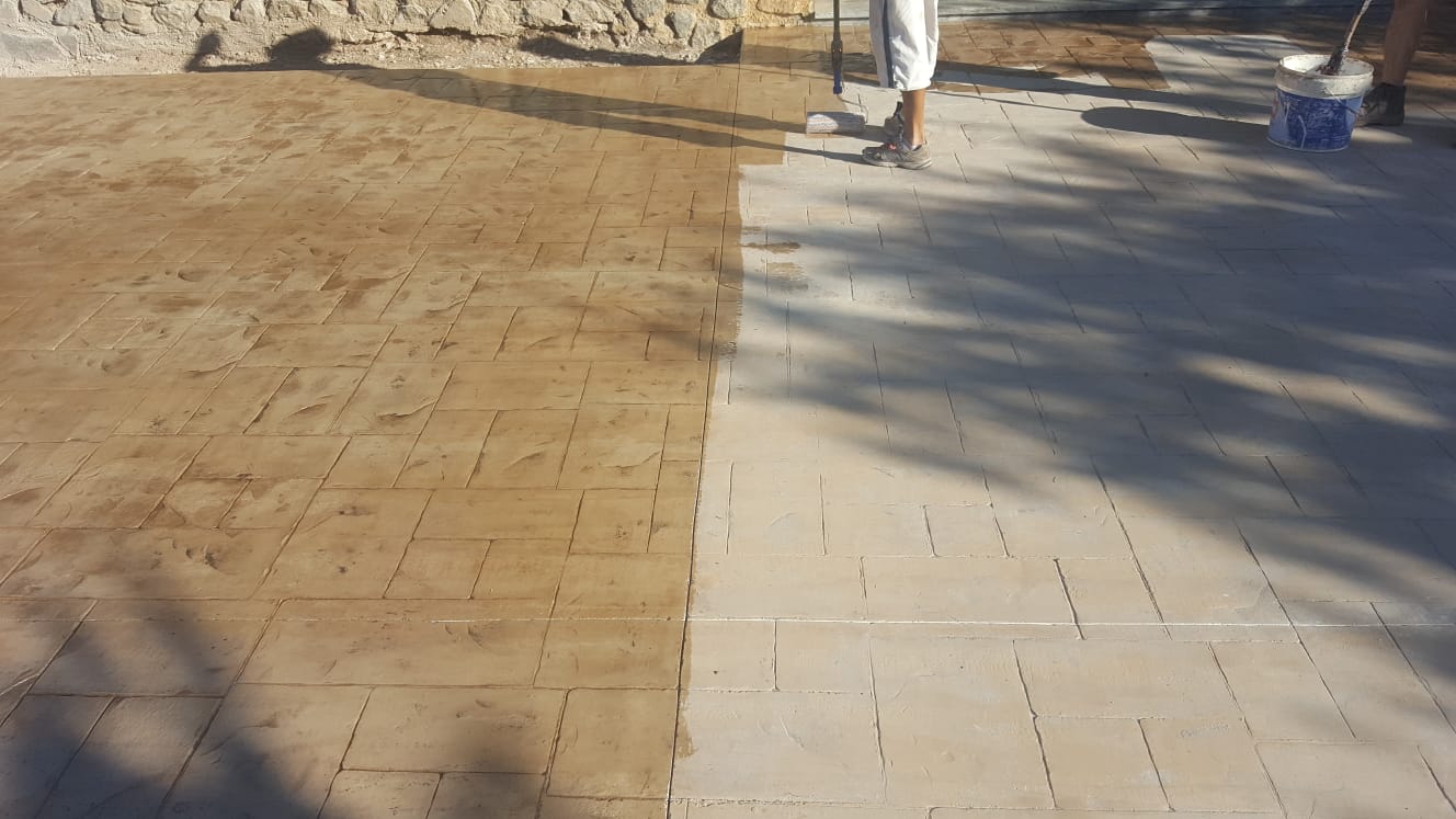 Renovamos la capa selladora con barnices y resinas especiales para hormigón impreso, que aportan: